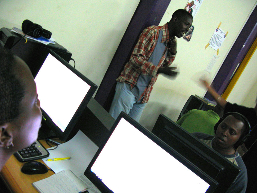 Since early 1994, I’ve returned to Rwanda, at the very least, annually. This has enabled me to see the changes and improvements taking place in the media. Following this latest trip in September 2008, I can concretely list advancements throughout radio, newspapers and TV and give specifics about the open self assessment and criticism occurring among media practitioners. But the most positive of all our experiences was teaching the inaugural class at the Great Lakes Media Center, GLMC. The Kigali-based center opened in February 2008 to provide journalism training to practicing journalists.